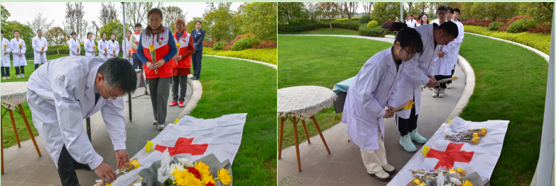 在仪式过程中,师生代表们肃立默哀,默哀毕,红十字会志愿者代表、师生和南昌洪福工作人员代表依次走上前来,敬献鲜花,以表达对大体老师们无私奉献精神的敬佩和感激之情。每一束鲜花都寄托着对逝者的哀思和对生命的敬畏,也彰显着社会对遗体器官捐献者的深深敬意。