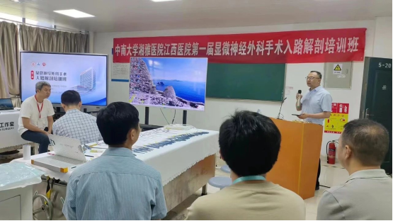 开幕式上,中南大学湘雅医院江西医院副经理、神经外科主任宋涛对首都医科大学宣武医院神经外科李茗初教授、南方医科大学珠江医院神经外科张祎年教授及来自北京、湖南、江西、广东等30余名学员的到来表示热烈的欢迎和诚挚的感谢,详细介绍了举办第一届显微神经外科手术入路解剖培训班的初衷及理念,并表示会将培训班拓展成每年两次的系列活动,致力于为学员们精心营造一个卓越的学习环境,对各位学员寄予深切厚望,鼓励大家积极进取勇敢探索未知。