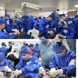 培训班最令人瞩目的部分是学员们亲身动手实操的环节。在两位教授和各位指导老师耐心细致指导下,学员们分成4个小组进行尸头标本解剖操作,亲身体验手术的每一个细微之处,他们个个聚精会神、小心翼翼地将理论知识与实践紧密结合在一起,深入了解神经解剖结构和手术技巧,通过对真实的尸头标本进行手术入路解剖操作,学员们更加直观地掌握了手术入路的选择、神经结构的保护以及手术技巧。