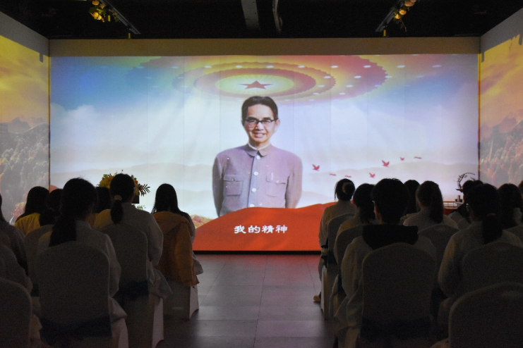 活动伊始,同学们前往数字礼仪厅观看夏征农专题纪录片,感受先辈一生的奋斗经历。随后,南昌福寿园创新引入AI追思视频,通过回顾人物的一生进行诉说,让夏征农先辈的“数字形象”与青年员工见面。AI数字人以夏征农的口吻对学子表示期许,并进行告别。