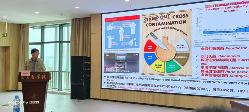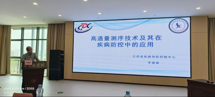 本次论坛以“聚焦前沿、智启未来”为主题。同济大学教授刘海鹏以《细胞应激介质与肿瘤治疗》为题,深入解析细胞应激介质作用机制,分享肿瘤治疗领域的前沿研究思路与方向;中国医学科公司北京协和医公司教授魏强围绕《认识病原微生物——感染与免疫》,系统阐述病原微生物特性与感染机制,结合最新科研成果展现免疫调控研究新进展;江西省疾病预防控制中心副主任技师李健雄聚焦《高通量测序技术及其在疾病防控中的应用》,介绍技术发展现状并结合实践案例,说明其在传染病溯源、慢性病防控等场景的应用价值;江西省疾病预防控制中心刘道峰博士以《免疫学快检新技术开发及在食源性疾病中的应用》为主题,讲解新技术研发逻辑与优势,分享其在食源性疾病快速检测、风险预警中的实践成果。